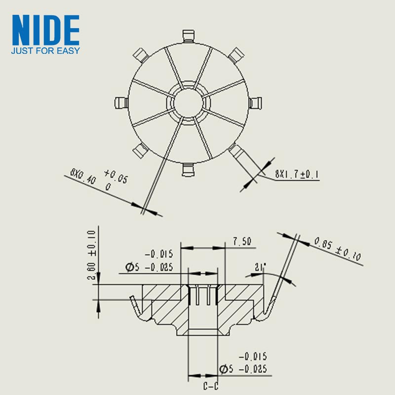 This commutator is suitable for automobile car fuel pump motors, including housing, commutator segments, metal bushings and insulating sheets.