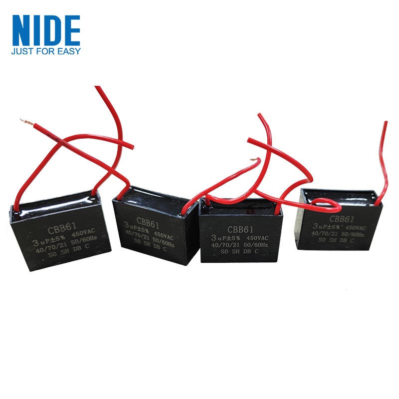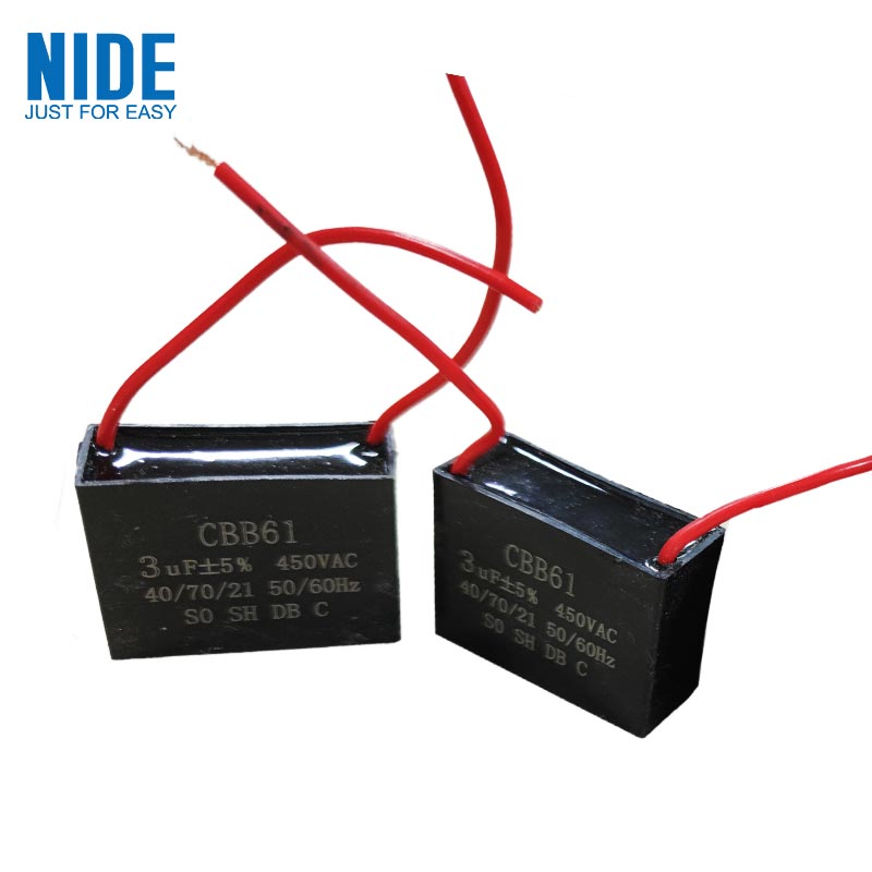 CBB61 starting capacitor is suitable for the starting and running of a single-phase motor with a frequency of 50HZ/60HZ AC power supply, and can also play a role in speed regulation of the motor. The CBB61 capacitor is an important supporting component for electric fans, range hoods, air-conditioning fans, and bread machines.