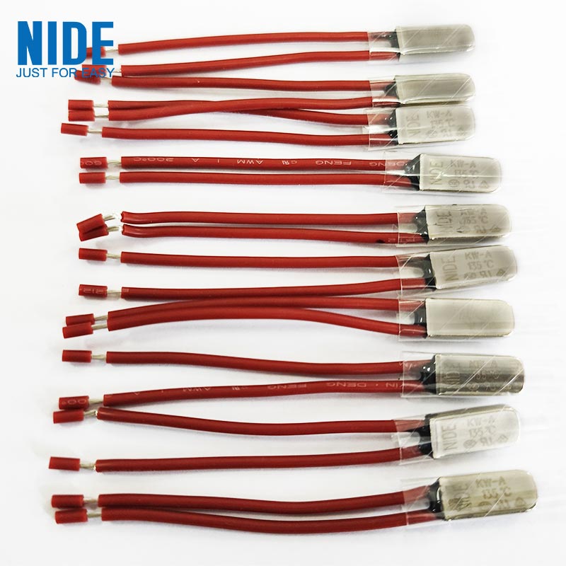 KW thermal protector is a kind of bimetal with constant temperature as a sensitive element. When the temperature or current rises, the heat generated is transferred to the bimetal disc, and when it reaches the rated operating temperature value, it will act quickly to disconnect the contacts and cut off the circuit; when the temperature drops